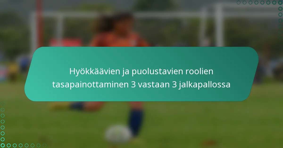 3 pelaajan jalkapallossa tasapainon saavuttaminen hyökkäävien ja puolustavien roolien välillä on olennaista onnistuneelle joukkueen strategialle. Hyökkäävät pelaajat pyrkivät tekemään maaleja ja luomaan mahdollisuuksia, kun taas puolustavat pelaajat keskittyvät estämään vastustajajoukkueen yritykset tehdä maali. Hyödyntämällä yksilöllisiä vahvuuksia ja ylläpitämällä selkeää viestintää joukkueet voivat mukauttaa taktiikoitaan parantaakseen kokonaissuoritusta ja yhteenkuuluvuutta kentällä.