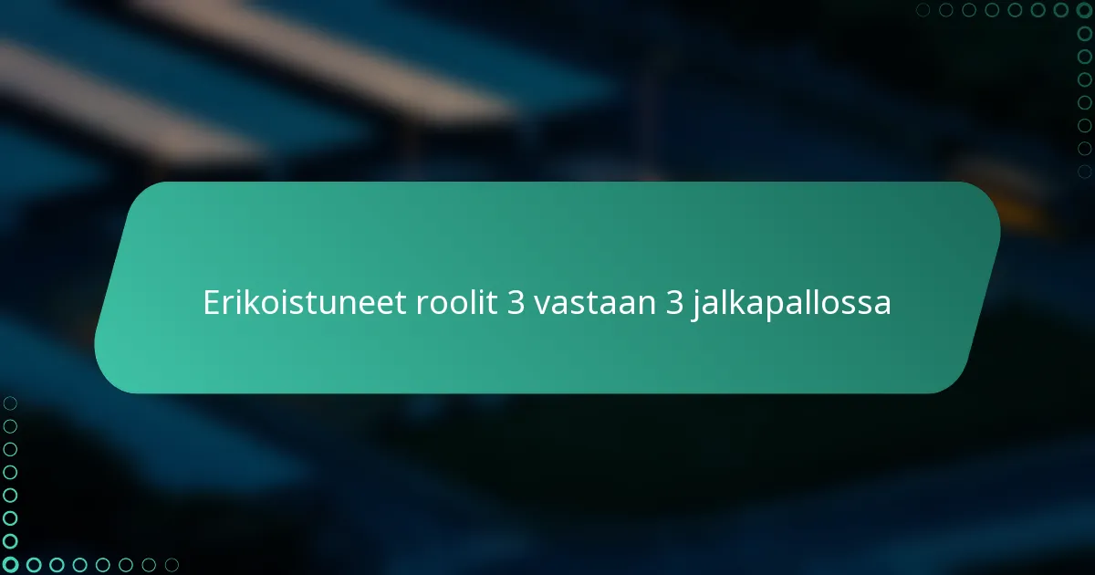 3-hengen jalkapallossa erikoistuneet roolit ovat ratkaisevia tehokkaassa pelissä, sillä jokaisen pelaajan on ymmärrettävä vastuunsa ja miten ne täydentävät toisiaan. Näiden roolien vuorovaikutus parantaa joukkueen dynamiikkaa ja kokonaissuoritusta kentällä.