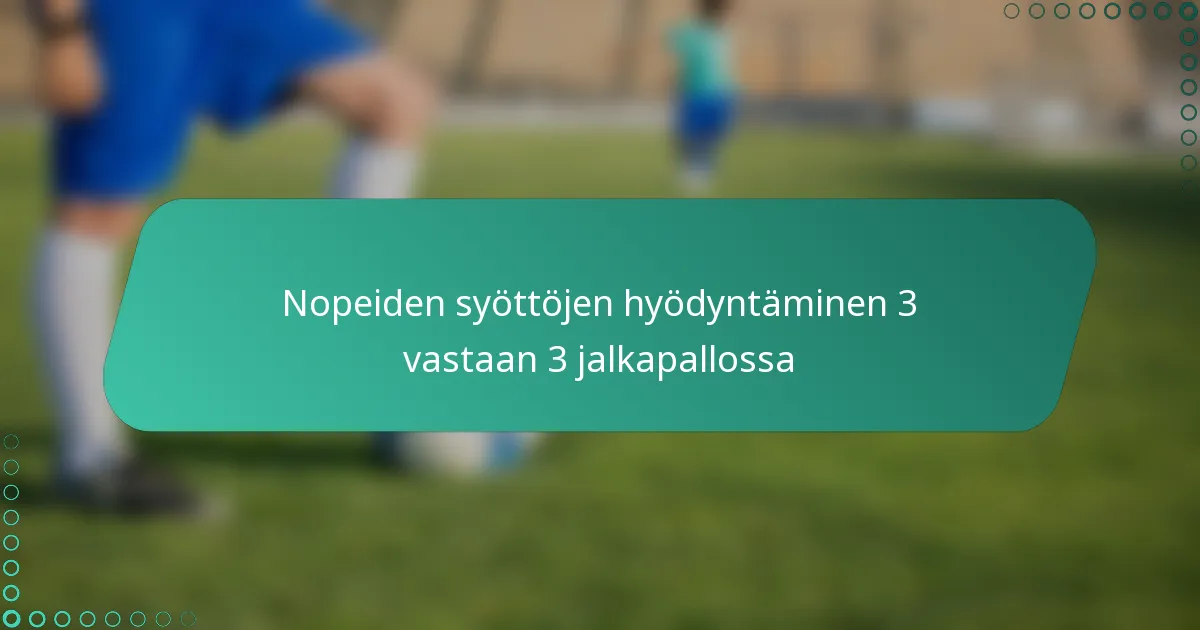 Mitkä ovat strategiset edut nopeista syötöistä 3 vastaan 3 -jalkapallossa?